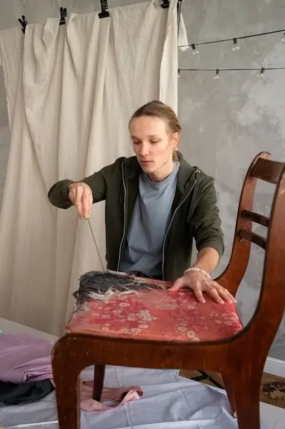 擦り減った 肘掛け の 曲線 に 残る 手跡 釘の 光沢 小さな 傷。職人 が 施した 目立たせない 補修 と 意図的に 残した 経年 の 表情 を 並置し 座る 瞬間 に 物語 の 重み と 優しさ を 指先 と 体重 で 感じさせます。触って ください と 誘う 表示 も 忘れずに。